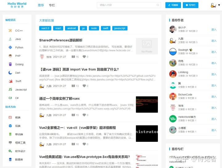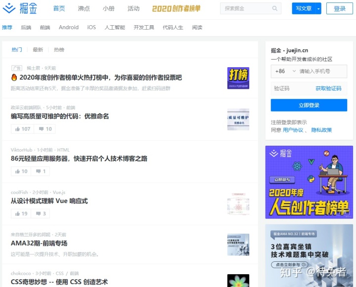 掘金成立于2015年8月,最初來自稀土,是稀土的一個(gè)子板塊。沒想到稀土并沒有走紅,掘金卻作為一個(gè)技術(shù)分享網(wǎng)站走紅,所以創(chuàng)始人明明立即調(diào)整方向,大力發(fā)展掘金。去年,掘金也開設(shè)了自己的專欄和小冊(cè)子,慢慢從一個(gè)技術(shù)文章分享網(wǎng)站轉(zhuǎn)型為綜合性技術(shù)社區(qū),期待后續(xù)發(fā)展。