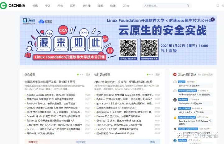 開源中國(guó)也是中國(guó)唯一一個(gè)專業(yè)報(bào)道開源事件的社區(qū)。網(wǎng)站會(huì)實(shí)時(shí)上報(bào)開源世界的所有信息,還有中文版:gitee。