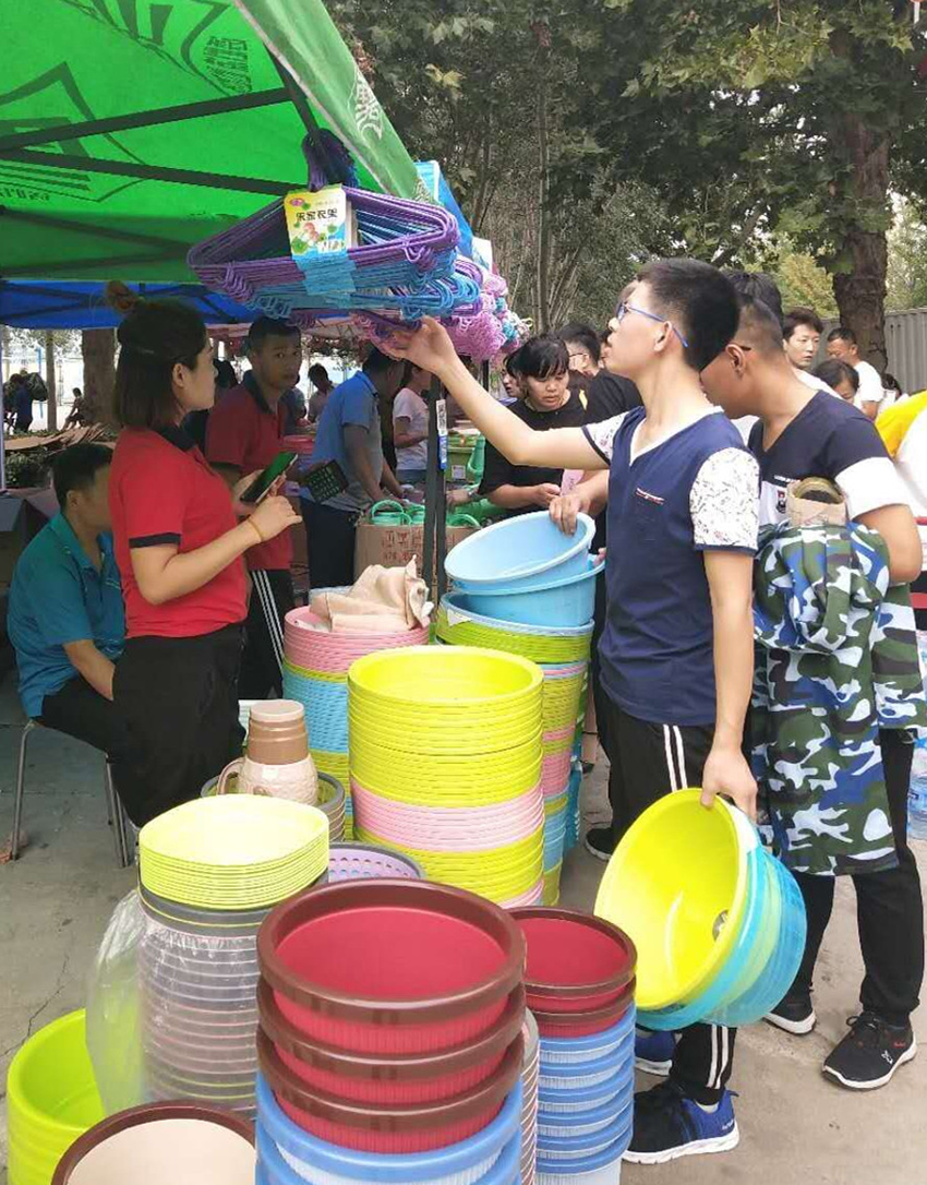 “這兩種暖瓶內(nèi)膽是一樣的,但是外殼的材質(zhì)不同,價格高的這一款外殼設(shè)計更個性一些。您放心,我們超市提供七天退換服務(wù),您可以先試用一下。”……這位耐心又專業(yè)地給新生和家長介紹商品的員工是信息學(xué)院店戴紅玉。早上六點多她就來到了店里,忙著收銀、搭建外場、懸掛促銷信息牌,之后又跑進跑出,跟其他部門幫忙的同事介紹商品、價格、收款注意事項等。到了中午吃飯時間,顧客逐漸減少了一些,戴紅玉總算稍稍松了一口氣,聊起了開學(xué)季的情況。“這是俺店第一次搭建外場,沒想到外場的銷售還挺好,之前的辛苦沒白費。”