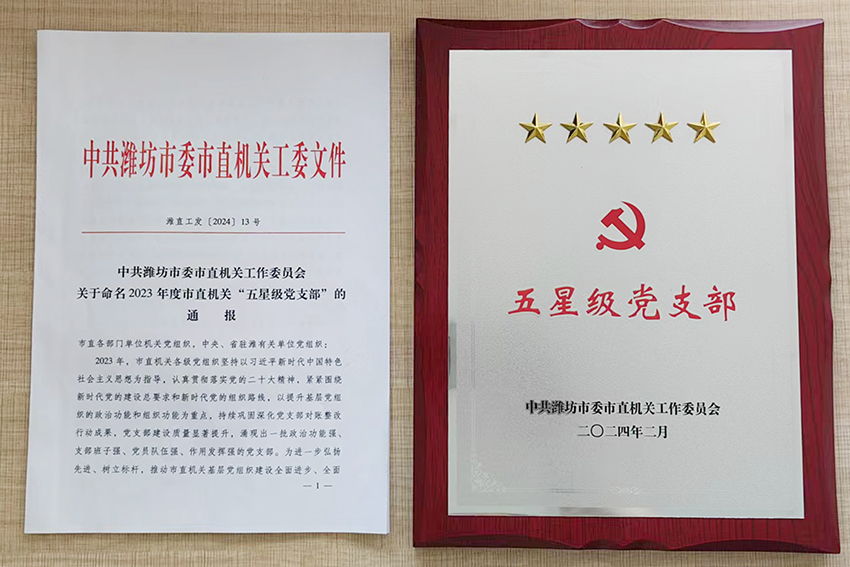 濰坊豐華(集團(tuán))公司黨委緊抓基層黨組織建設(shè)工作,積極推動(dòng)黨支部標(biāo)準(zhǔn)化規(guī)范化走深走實(shí),公司第一黨支部榮獲2023年度濰坊市委市直機(jī)關(guān)“五星黨支部”榮譽(yù)稱號(hào)。