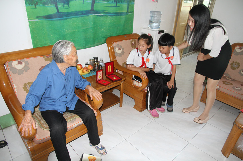 見到老師和孩子們,楊華英老人非常高興。隨后老人將5000元錢拿出來,交到了青年路小學(xué)副校長(zhǎng)姜麗的手中,同時(shí)愉快地接過學(xué)校贈(zèng)送的助學(xué)錦旗。“今年是抗戰(zhàn)勝利70周年,單位領(lǐng)導(dǎo)給我送來了紀(jì)念章和5000元錢。紀(jì)念章我收起來了,可這5000元錢成了我的心病。國(guó)家把我照顧得這么好,我已經(jīng)很知足了,就想把錢捐出去,再為社會(huì)做點(diǎn)事情。”老人懇切地說。