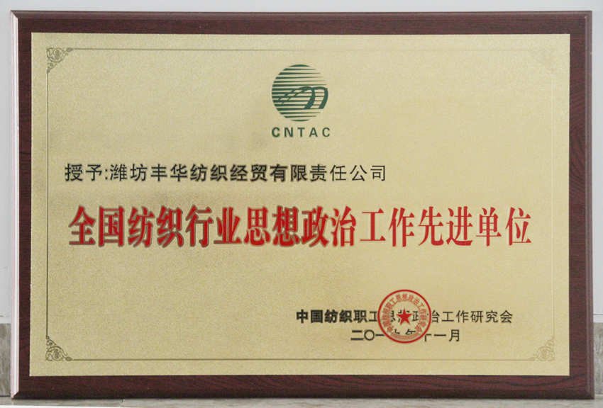 11月8日—10日,中國紡織職工思想政治工作研究會第五次會員大會暨全國紡織行業(yè)黨建和誠信文化建設(shè)工作交流會在河南西平召開。會上對全國紡織行業(yè)黨建和思想政治工作優(yōu)秀單位、先進個人進行了表彰,豐華(集團)公司獲得“全國紡織行業(yè)黨建工作先進企業(yè)”和“全國紡織行業(yè)思想政治工作先進單位”兩項榮譽。